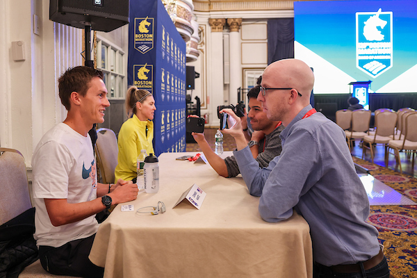 Connor Mantz and Jonathan Gault, Lets Run, Bank of America Boston Marathon, photo by Kevin Morris