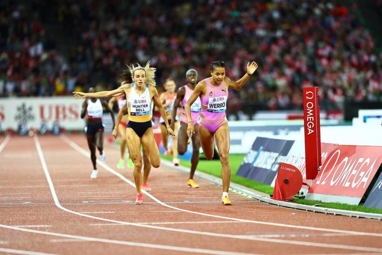 To say that day 2 of the Diamond League final was a complete program would be a massive understatement! The first finals – simultaneous men’s and women’s discus throws – started at 5:30 PM, following a half-hour break for the youth events. The final race concluded at 9:40 p.m., followed by presentations and a fireworks display. It was an evening of superlative track and field, with some shocks, lots of drama, and a bit of controversy. With the winner in each discipline of the Diamond League given a wild card to the World Championships, there was something extra at stake for those not yet selected for Tokyo. (To clarify something I wrote from day one. Joe Kovacs was the winner of the shot put on day one, but did not receive a wild card, as the USA has its normal three places plus a wild card for Ryan Crouser, the defending champion. And each country is allowed a maximum of four athletes in any event. Letzigrund in Zurich is an excellent stadium with a fantastic atmosphere. The Diamond League final day 2 delivered just like day 1.