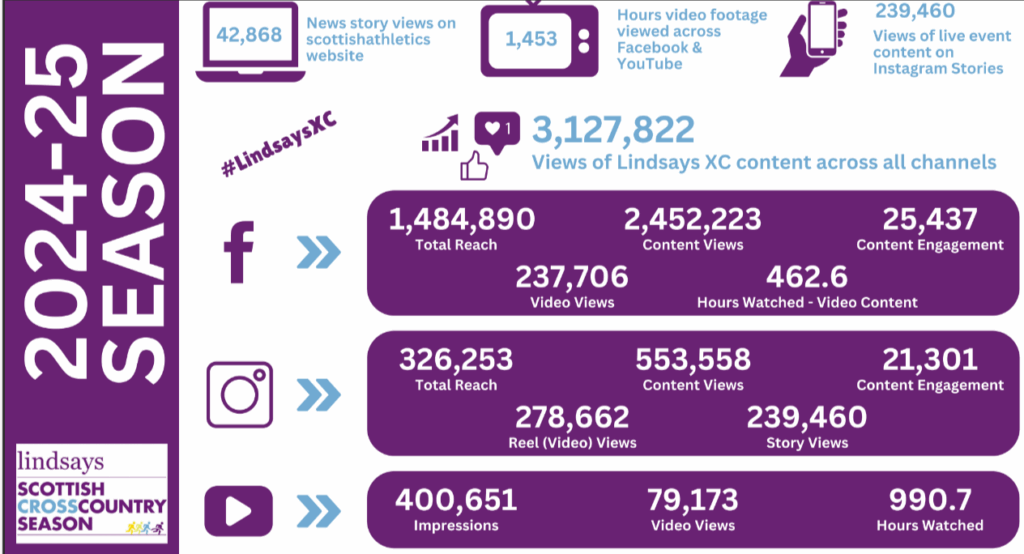 Video content and posts from that day and others like the big one – the Lindsays National XC at Falkirk in February – have contributed to stunning social media impact.